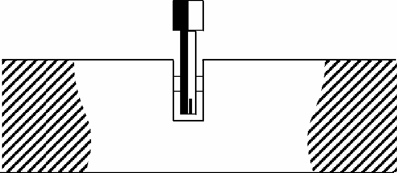 La teneur en humidité est déterminée dans plusieurs trous ou canaux forés dans le sol. Les trous sont forés à une profondeur d'environ ½ x l'épaisseur de la structure du sol et avec un diamètre permettant le passage libre du capteur de l'instrument de mesure. Aspirez soigneusement le trou pour éliminer la saleté et la poussière du béton. Placez le mesureur d'humidité dans le trou foré avec un joint d'étanchéité bien ajusté (hermétique), voir fig. 6.
