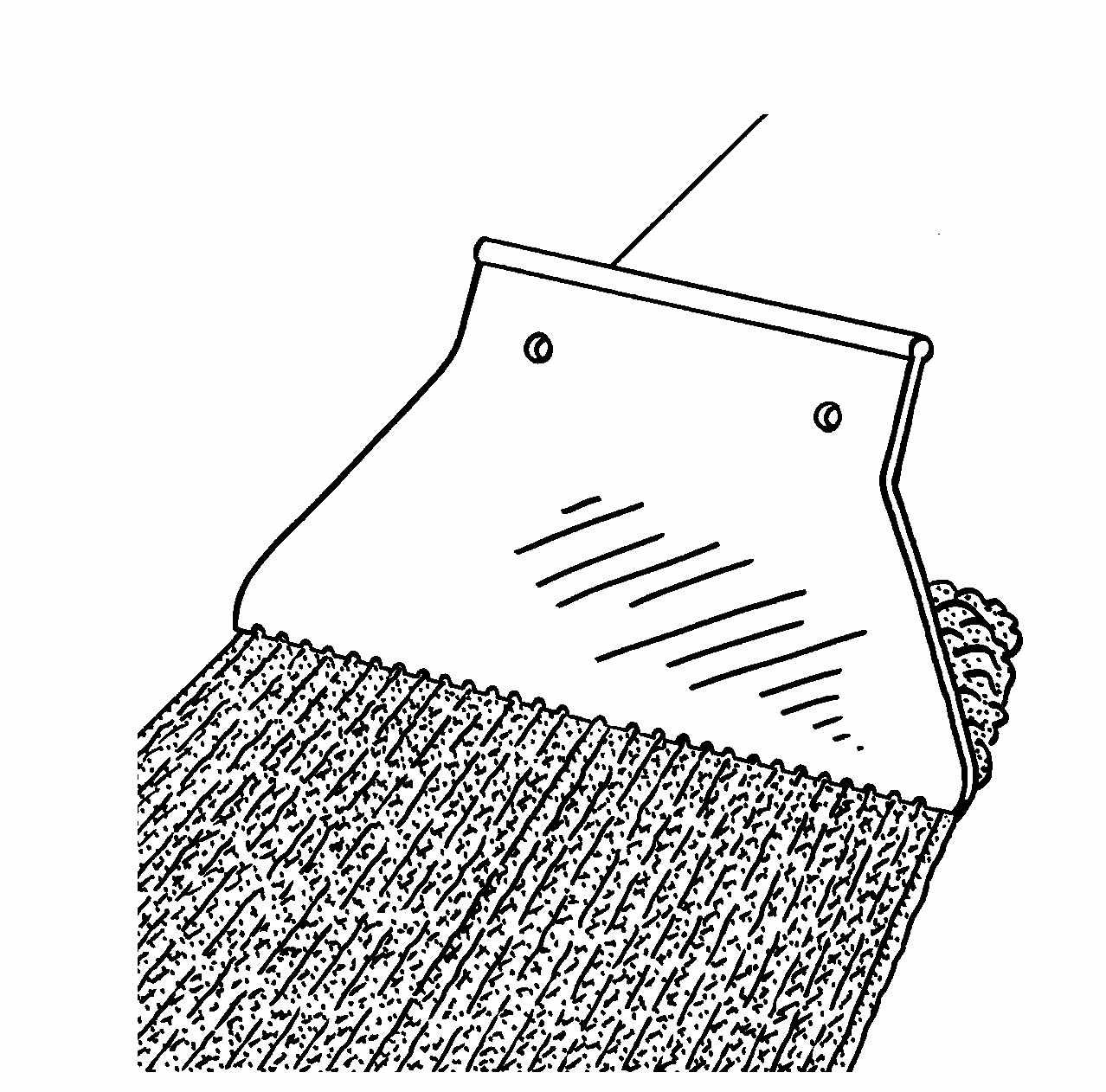Spatule métallique Junckers B12 : la spatule est tenue à un angle de 45°. Appliquez 0,8 litre par m² sur une surface équivalente à 3-4 rangées de lames à la fois. Ne dépassez jamais une surface qui peut être posée en 40 minutes.