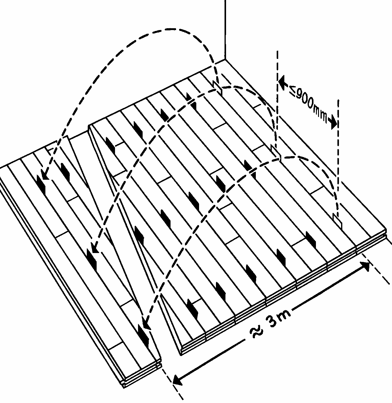 Les limites extérieures de la mesure sur 10 lames, qui dépendent également de la taille du plancher, sont indiquées par des lignes pointillées. La taille de la surface du plancher, ainsi que son emplacement, c'est-à-dire au rez-de-chaussée ou à un étage, peuvent également influencer le choix de la mesure sur 10 lames.