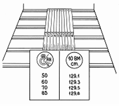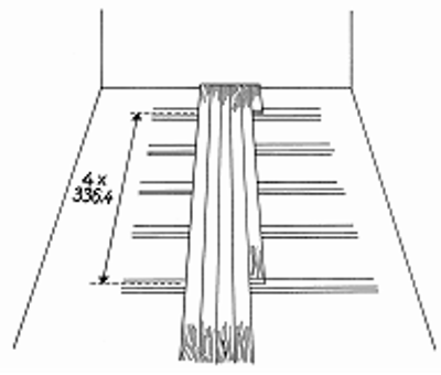 Si l'entraxe des lambourdes est de 336,4 mm, la distance entre les têtes de lames de 2 rangées consécutives doit être de 4 x 336,4 mm, soit 1345,6 mm (vois dessin ci-contre).