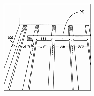 La première et la dernière rangée de lambourdes doivent être posées à 100 mm du mur (distance à l'axe de la lambourde). La 2ème rangée doit être posée avec un entraxe de 266 mm par rapport à la première rangée (mesure d'axe à axe). Toutes les autres rangées doivent être posées avec un entraxe de 336,4 mm en utilisant le gabarit de pose (A).