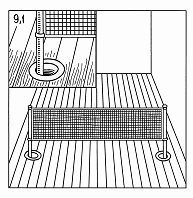 En cas d'installation de trappons dans le parquet, le diamètre interne du trappon doit être supérieur au diamètre externe du poteau d'au moins 40 mm. En bordure de parquet, tous les trappons doivent être excentrés vers le milieu du parquet par rapport aux douilles insérées dans le béton.