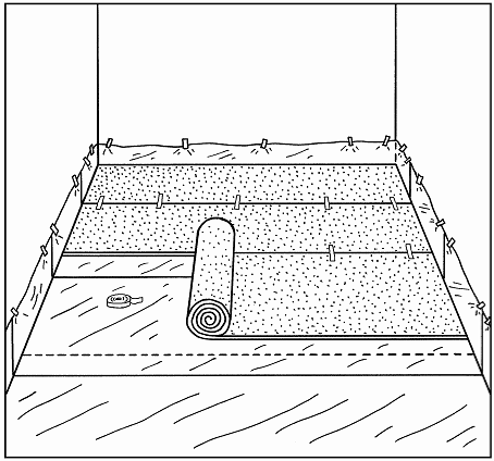 Note : Si la sous-construction est totalement ou partiellement inélastique, utiliser un tapis en mousse résiliente Junckers de 10 mm. Sur une sous-construction élastique, par exemple sur un parquet sportif existant, installer un tapis en mousse résiliente Junckers de 5 mm. Contactez Junckers pour plus d'informations.
