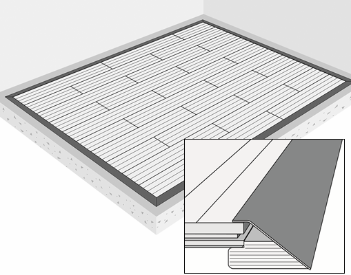 Si des plinthes sont nécessaires, elles seront montées sur le périmètre extérieur du parquet. Utiliser un maillet en caoutchouc si nécessaire.